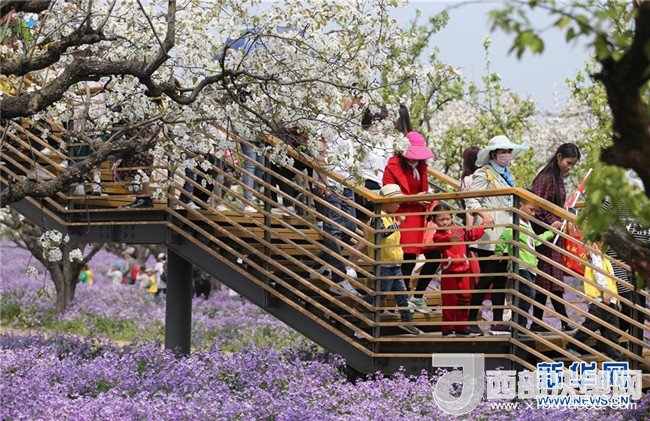 清明時(shí)節(jié),在江蘇省宿遷市三臺(tái)山森林公園梨香滿(mǎn)園景區(qū),白色的梨花和紫色的二月蘭爭(zhēng)相綻放,吸引眾多游客前來(lái)踏青賞花。 新華社發(fā)(周?chē)?guó)強(qiáng) 攝)