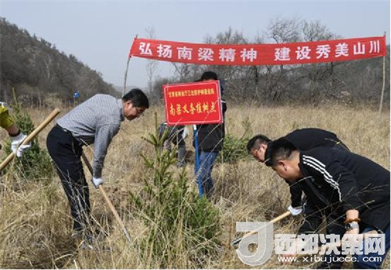 隨后,馬立鵬一行赴子午嶺生態(tài)林的密集區(qū)大鳳川林區(qū)開展“弘揚(yáng)南梁精神,建設(shè)秀美山川”義務(wù)植樹活動,并確立了甘肅省林業(yè)廳三北防護(hù)林建設(shè)局的“南梁義務(wù)植樹點”。通過親身開坑植樹,馬立鵬真切地感受到,森林的的確確是陸地生態(tài)系統(tǒng)的主體,林業(yè)更是一項惠民生、利千秋、保長遠(yuǎn)的重要公益事業(yè)和基礎(chǔ)產(chǎn)業(yè),承擔(dān)著生態(tài)建設(shè)和林產(chǎn)品供給的重要政治任務(wù),在穩(wěn)步助推全省脫貧攻堅行動的今天,努力做好林業(yè)生態(tài)建設(shè)工作意義重大、使命光榮、義不容辭。