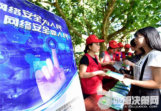 河北省廊坊市安次區(qū)網(wǎng)信辦工作人員和志愿者向?qū)W生們發(fā)放網(wǎng)絡(luò)安全宣傳折頁,倡導(dǎo)廣大師生提高網(wǎng)絡(luò)安全意識,共同維護(hù)網(wǎng)絡(luò)社會秩序(2017年9月19日攝)。新華社記者 王曉 攝