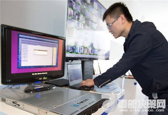在北京智能計算產(chǎn)業(yè)研究院舉行的發(fā)布會上,工作人員在現(xiàn)場演示高通量人工智能一體機(jī)的實(shí)際應(yīng)用(2017年12月6日攝)。新華社記者 金立旺 攝
