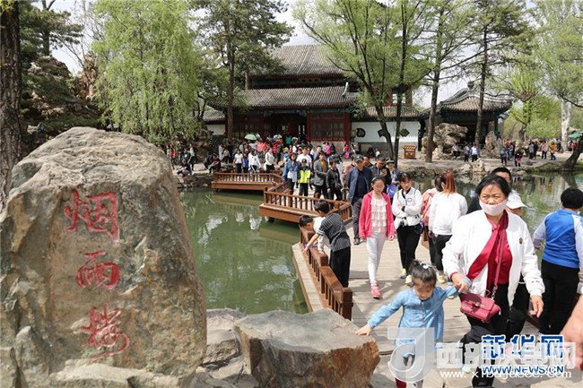 5月1日,游客在河北承德避暑山莊煙雨樓游覽。新華社發(fā)(劉環(huán)宇攝)