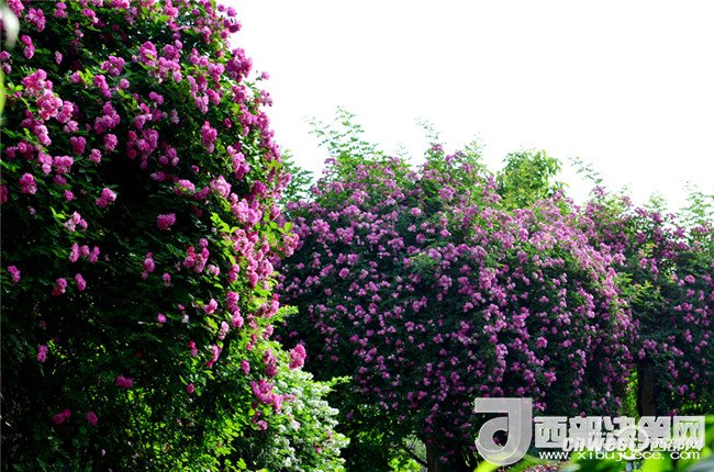 5月1日,寧強縣縣城三角洲公園里盛開的薔薇花格外艷麗。