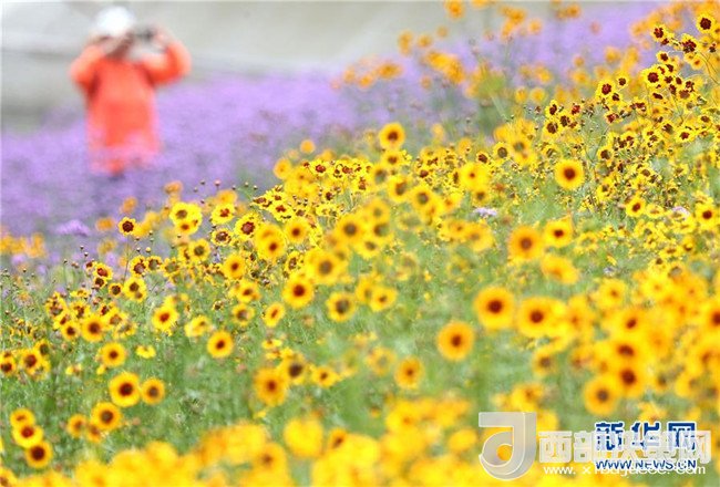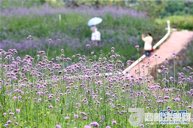 時(shí)下,廣西南寧市良慶區(qū)那馬鎮(zhèn)壇良村壇板坡100多畝馬鞭草和非洲雛菊競(jìng)相盛放,田園風(fēng)光吸引了不少游客前來(lái)觀賞。 新華社記者 周華 攝