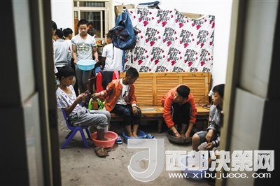 睡覺前,因?yàn)閷嬍覜]有熱水,球隊(duì)里的小球員來到馬順洗的房間里洗腳。