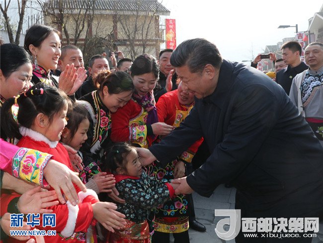2018年2月12日上午,習(xí)近平在阿壩藏族羌族自治州汶川縣映秀鎮(zhèn)看望慰問(wèn)群眾。 新華社記者 鞠鵬 攝
