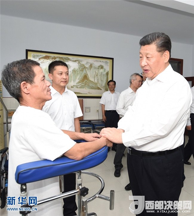 2016年7月28日,中共中央總書記、國(guó)家主席、中央軍委主席習(xí)近平到河北唐山市調(diào)研考察。這是習(xí)近平在唐山市截癱療養(yǎng)院康復(fù)室了解截癱傷員的康復(fù)治療情況。 新華社記者 謝環(huán)馳 攝