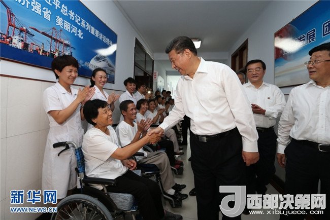 2016年7月28日,中共中央總書記、國(guó)家主席、中央軍委主席習(xí)近平到河北唐山市調(diào)研考察。這是習(xí)近平在唐山市截癱療養(yǎng)院看望慰問(wèn)截癱傷員。 新華社記者 蘭紅光 攝