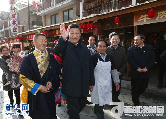 這是2018年2月12日上午,習(xí)近平在阿壩藏族羌族自治州汶川縣映秀鎮(zhèn)場(chǎng)鎮(zhèn)考察。 新華社記者 鞠鵬 攝