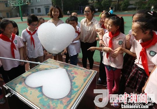 孩子們體驗(yàn)造云工程師,制造出“心形云”?!°蟛?攝