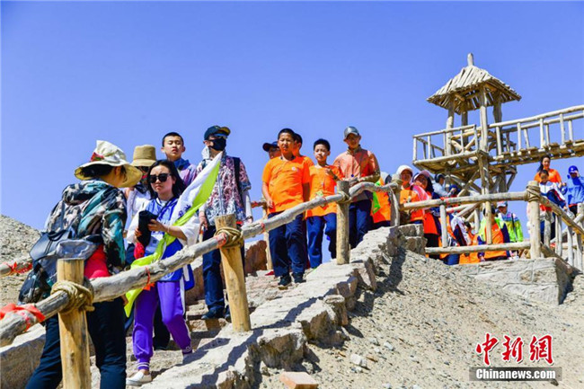 敦煌陽(yáng)關(guān)景區(qū)新開辟的陽(yáng)關(guān)棧道旅游項(xiàng)目,端午節(jié)期間吸引眾多游人體驗(yàn)。王斌銀 攝