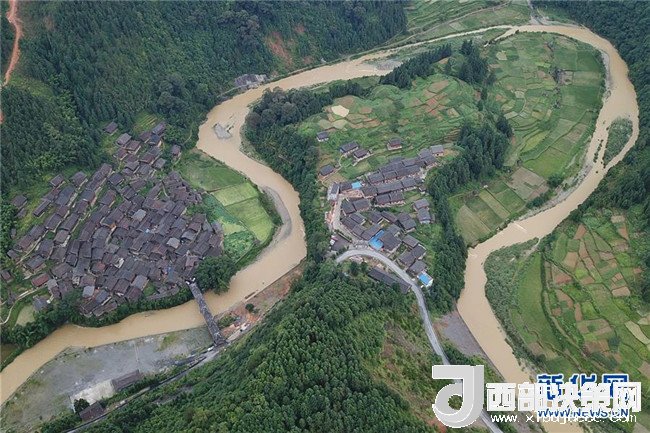 煙雨中的貴州省榕江縣寨蒿鎮(zhèn)三洲村風(fēng)光(6月24日無(wú)人機(jī)拍攝)。