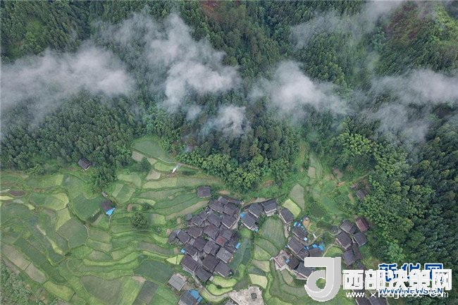 6月24日,貴州榕江縣的侗族村寨籠罩在煙雨之中,仿佛披上了一層輕紗霓裳,構(gòu)成了一幅幅秀美的山水畫卷。 新華社記者 歐東衢 攝