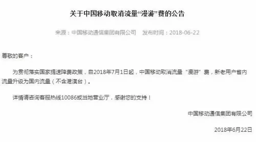 7月1日起取消流量“漫游”費(fèi)