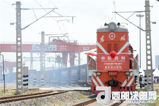 2018年6月13日,160輛進(jìn)口汽車搭載中歐班列“長(zhǎng)安號(hào)”整車進(jìn)口專列抵達(dá)西安港西安鐵路集裝箱中心站。 新華社記者 李一博 攝