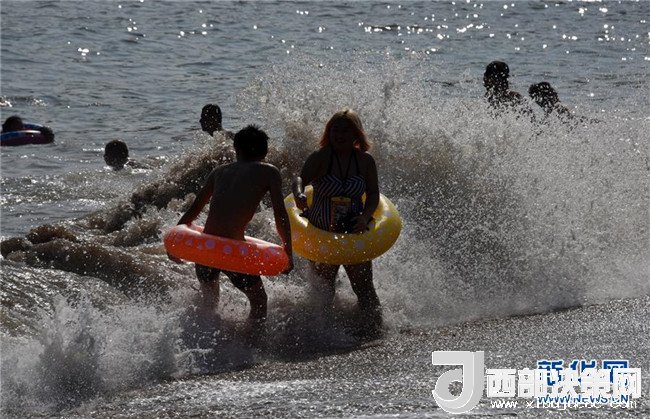 7月1日,游客在山東省青島市第一海水浴場戲水。 新華社發(fā)(黃杰顯 攝)