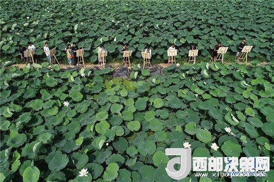 7月24日,一群學生在隆堯縣東良鎮(zhèn)澤畔村荷塘邊寫生。