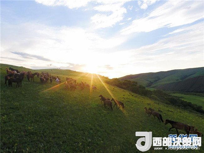盛夏時節(jié),內(nèi)蒙古錫林郭勒草原一碧千里,遙接天際。藍(lán)天白云之下,牛羊悠閑自在,馬群奔馳其中,風(fēng)光旖旎。 新華社記者 劉磊 攝