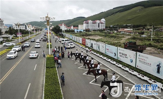 8月5日,阿爾山市執(zhí)法隊(duì)員在騎馬巡邏。