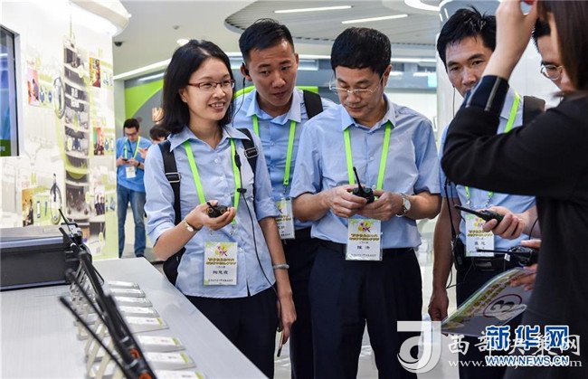 參加“國家發(fā)展戰(zhàn)略與香港青年機(jī)遇”參訪團(tuán)的香港青年代表在深圳海能達(dá)通信股份有限公司總部展廳參觀(2018年6月26日攝)。新華社記者毛思倩攝