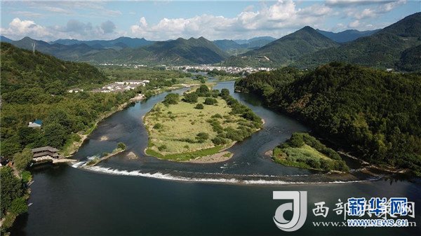 這是麗水市蓮都古堰畫鄉(xiāng)小鎮(zhèn)的“古堰”通濟(jì)堰(8月15日無(wú)人機(jī)拍攝)。
