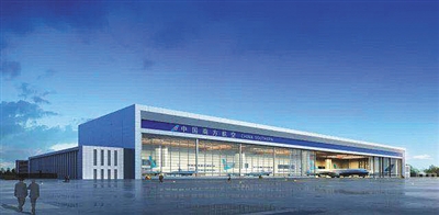 北京新機(jī)場南航基地1號機(jī)庫效果圖。 北京市建工集團(tuán)供圖
