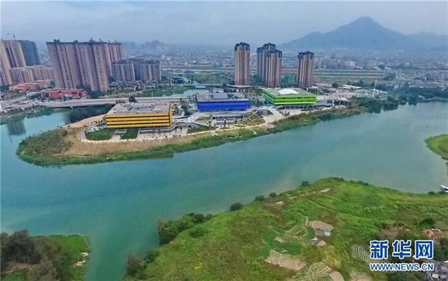 這是利用木蘭溪流域舊河道開挖成的人工湖——玉湖。當(dāng)?shù)卦诖私Y(jié)合周邊公共綠地,建設(shè)公共建筑,實現(xiàn)了現(xiàn)代建筑與自然景觀渾然一體(8月6日無人機(jī)拍攝)。新華社記者 林善傳 攝