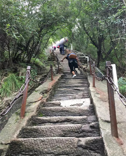 最虐的自古華山一條路,12.5公里的山路,9567級臺階。途經(jīng)玉泉院、千尺幢、百尺峽、老君犁溝、蒼龍嶺等經(jīng)典景點(diǎn)。