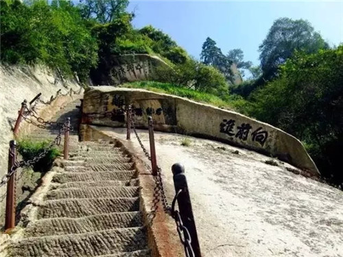 老君犁溝: "犁險(xiǎn)于幢,幢險(xiǎn)而犁突。"這描寫的是夾在陡峭石壁之間一條深不可測的溝狀險(xiǎn)道,石階570多階。