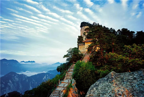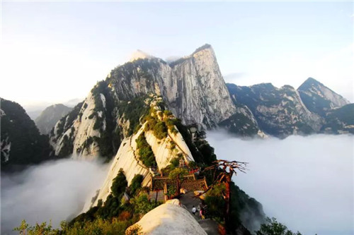 漫步于華山的峰嶺山道,到處可以看到許多與云有關(guān)的景點(diǎn),也能從與云有關(guān)的神奇?zhèn)髡f中,感受到宛若仙境的景象。五云峰是華山諸峰中最富有詩情畫意的一座峰嶺。每逢深秋季節(jié),松翠楓赤,山花耀目,在太陽光的照射下,猶如五色彩云,霓裳般妝扮了山的容顏。在這里,松楓山花都成了五彩云霧。而位于云臺峰以北的白云峰,山峰的若石就如白云一樣漂浮在空中。傳說漢元帝劉爽的女兒南陽公主為避離亂之苦,遠(yuǎn)離塵露,就到白云峰隱居修行,修煉功成,駕鶴乘云而去。