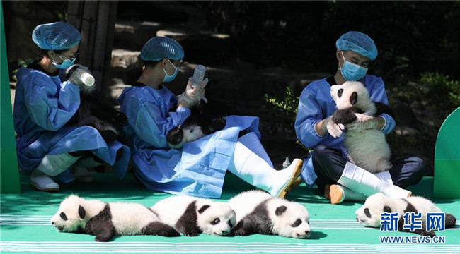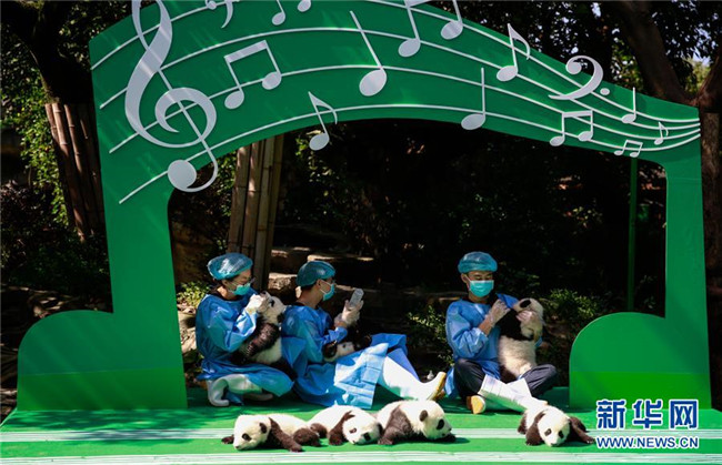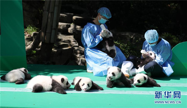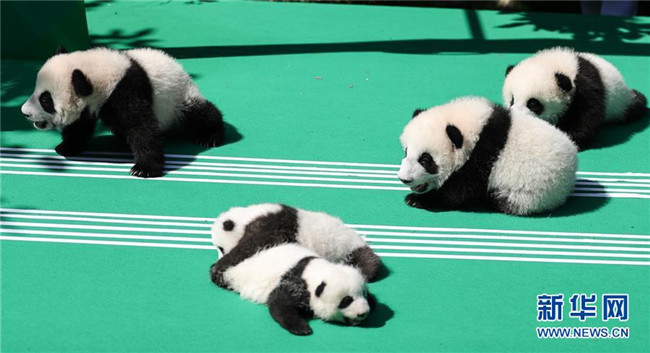 這是9月28日在成都大熊貓繁育研究基地月亮產(chǎn)房拍攝的大熊貓寶寶。 當(dāng)日,成都大熊貓繁育研究基地為2018年出生的12只新生大熊貓寶寶舉行了一場別開生面的亮相活動。