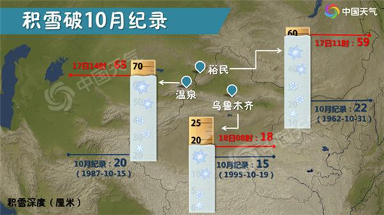 受強冷空氣影響,17日新疆伊犁河谷平原地區(qū)出現(xiàn)近28年以來最早大范圍初雪,首府烏魯木齊也降下今年下半年的初雪,較常年初雪日10月23日(1981-2010年)略早。昨天早晨降雪持續(xù),8時烏魯木齊積雪已經(jīng)達到18厘米,打破了當?shù)?0月份的積雪紀錄,并且最低氣溫首度“破冰”只有-1℃。受其影響嗎,新疆暴雪、大風、寒潮、霜凍、道路結(jié)冰、沙塵暴6個預(yù)警齊發(fā),惡劣天氣為農(nóng)牧業(yè)生產(chǎn)、林果業(yè)、交通旅游、城市運行等帶來了不利影響。