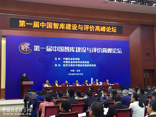 2018年10月19日,由中國社會科學(xué)評價研究院主辦,經(jīng)濟(jì)日報社中國經(jīng)濟(jì)趨勢研究院協(xié)辦的“第一屆中國智庫建設(shè)與評價高峰論壇”在京舉行。來自中國社會科學(xué)院、部委所屬專業(yè)性智庫、各省市級地方社科院和黨校行政學(xué)院、各高校智庫、企業(yè)智庫、社會智庫的百余名國內(nèi)智庫專家學(xué)者出席本次論壇。