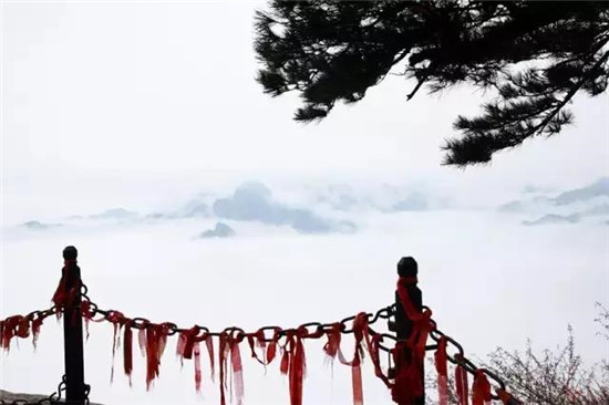是時(shí),但見夜幕自東方悄然隱退,晨曦初露,漸漸霞光瑰麗,云源奔涌。瞬間,一輪火球噴薄而出,繼而光芒四射,氣象萬千,整個(gè)世界大放光明,游人身心為之一振。待云霧散盡,蒼松翠柏,則更加清麗悅目,美妙神奇。故而,游名山者必登華山,登華山者必觀日。華山日出亦被列為華山自然風(fēng)光中的重要景觀之一。