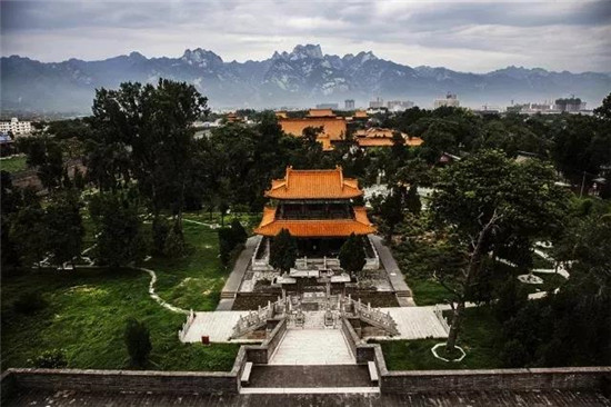 西岳廟始建于漢武帝時(shí)代,后成為歷代帝王祭祀華山神的場(chǎng)所。西岳廟坐北朝南,廟門正對(duì)華山。在由北至南的中軸線上依次排列著灝靈門、五鳳樓、欞星門、金城門、灝靈殿、寢宮、御書樓、萬壽閣。整個(gè)建筑呈現(xiàn)前低后高的格局。