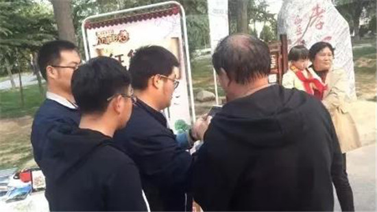 營銷中心工作人員耐心細(xì)致地幫助游客參與活動