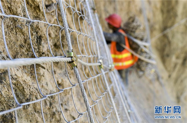 11月12日,在新疆塔什庫爾干塔吉克自治縣大同鄉(xiāng)鄉(xiāng)政府附近的一處路段,來自云南的王華國在運送防護網(wǎng)。 近日,一支由四川、云南等地工人組成的施工隊忙碌在帕米爾高原深處的大山中,為塔什庫爾干塔吉克自治縣縣城至大同鄉(xiāng)道路的易落石路段安裝防護網(wǎng)。崇山峻嶺間,工人要攀爬至峭壁上施工作業(yè),如躍動在大山間的“舞者”。據(jù)介紹,這支施工隊常年活躍在新疆山區(qū)道路的施工現(xiàn)場,為風(fēng)險路段加裝安全防護裝置,保障過往車輛和沿途村民出行安全。 新華社記者 胡虎虎 攝
