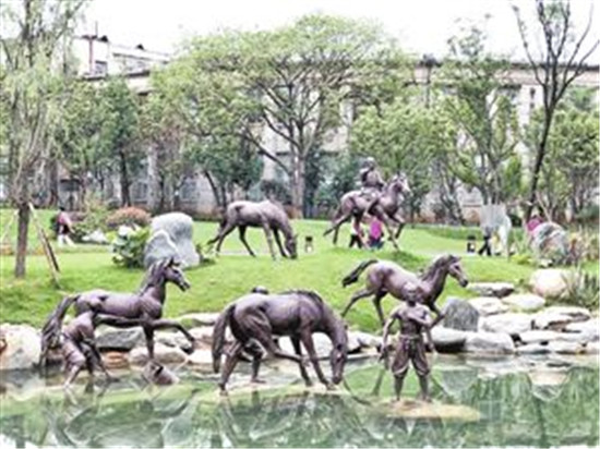 今年6月30日,《翠湖周邊歷史文化片區(qū)整治提升規(guī)劃》中的翠湖洗馬河水系恢復(fù)及帶狀公園對(duì)外開(kāi)放,消失許久的“柳營(yíng)洗馬”景觀重現(xiàn)翠湖邊,蜿蜒的河道從兩岸柳蔭下穿過(guò),無(wú)論是具有明清歷史特色的兵馬奔騰的青銅雕塑,還是古樸典雅的活字印刷,抑或是獨(dú)特的噴泉造型,無(wú)不重現(xiàn)了600多年前沐英“柳營(yíng)春試馬、虎帳夜談兵”的歷史文化,吸引著過(guò)往市民和游客,被稱(chēng)為“昆明之眼”的翠湖,因其更具亮色。