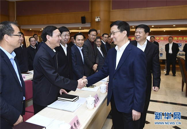 2月18日,中共中央政治局常委、國(guó)務(wù)院副總理韓正到國(guó)家稅務(wù)總局調(diào)研并主持召開座談會(huì)。 新華社記者謝環(huán)馳攝