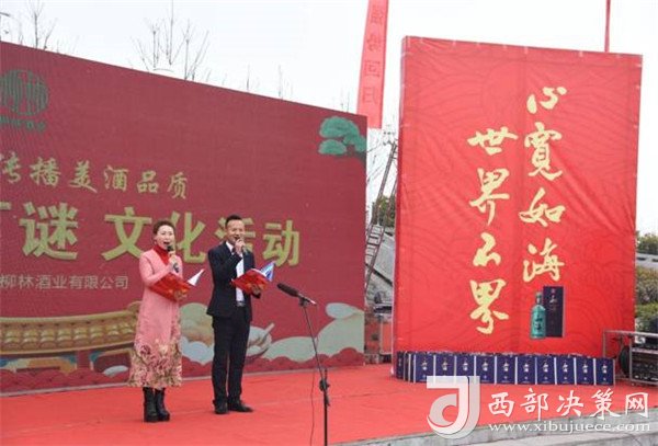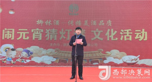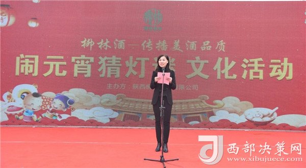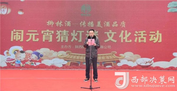 陜西柳林酒業(yè)有限公司副總經(jīng)理周峰發(fā)表講話并向鳳翔父老送上新春祝福和節(jié)日的問候。“三陽開國泰,美哉柳林酒。今天是正月十五,首先我代表柳林酒業(yè)董事長付小銅先生、總經(jīng)理柳林先生及全體員工給現(xiàn)場(chǎng)的父老鄉(xiāng)親、朋友們拜個(gè)晚年,祝各位家庭好、事業(yè)好、身體好心情好、運(yùn)氣好、福氣好、財(cái)氣好、愛情好、朋友好、新的一年一切都好!柳林酒業(yè)主辦的以傳播柳林美酒品質(zhì)為主題的“鬧元宵有獎(jiǎng)猜燈謎文化活動(dòng)”,在此,對(duì)前來的各位父老鄉(xiāng)親,各界朋友表示衷心的感謝。本次猜謎活動(dòng)獎(jiǎng)品總價(jià)值15萬元,共設(shè)1000條謎語,只要猜中謎底,關(guān)注“柳林酒業(yè)”,即可獲得獎(jiǎng)品?,F(xiàn)場(chǎng)更有國家級(jí)評(píng)酒大師親臨現(xiàn)場(chǎng),品柳林美酒,共同傳播美酒文化和歌舞表演環(huán)節(jié),相信大家一定會(huì)不虛此行,度過一個(gè)難忘的元宵佳節(jié)。