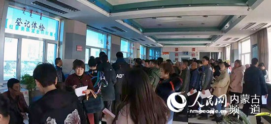 錫林郭勒盟中心血站內(nèi)排滿(mǎn)了前來(lái)獻(xiàn)血的市民。