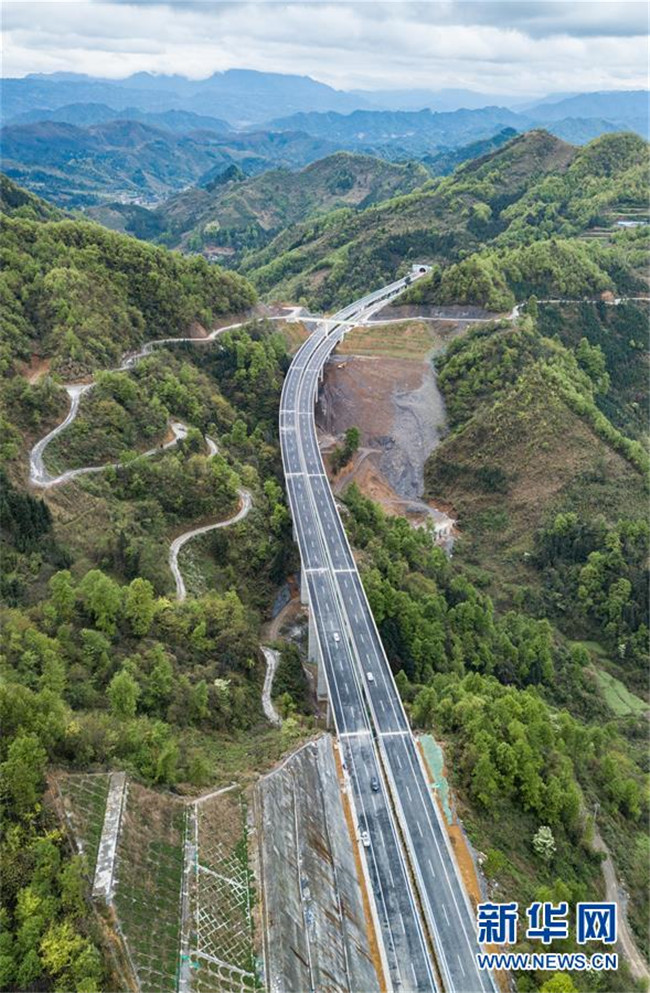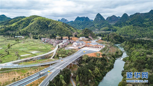4月3日無人機拍攝的三荔高速水各至荔波東路段。 新華社記者 陶亮 攝