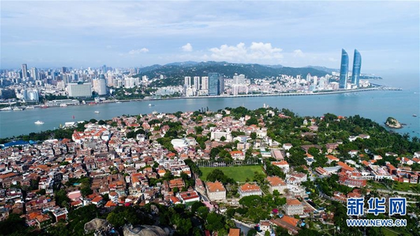 這是鳥瞰廈門鼓浪嶼和廈門島(2017年8月24日攝)。新華社記者 王建華 攝