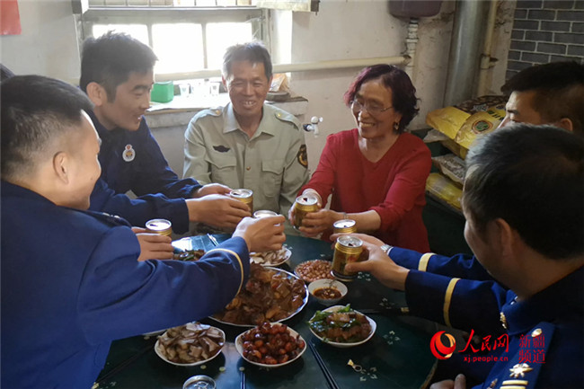 “媽媽,我們祝您母親節(jié)快樂(lè)!”在胡阿利的家里,六名森林消防員圍著蛋糕為胡媽媽送上了祝福。