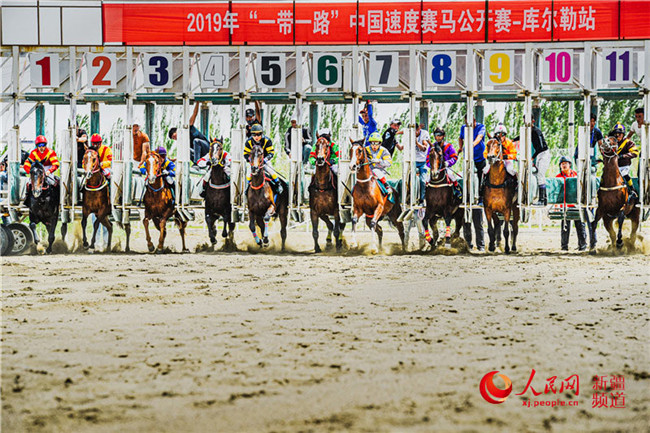 近日,2019年“一帶一路”中國速度賽馬公開賽·新疆庫爾勒站(第二屆全國青年運動會速度賽馬預(yù)賽·新疆站)比賽在新疆庫爾勒市體育公園正式拉開帷幕,來自疆內(nèi)外的1.8萬余名游客現(xiàn)場感受了馬背上的“速度與激情”。(趙環(huán) 彭守群)