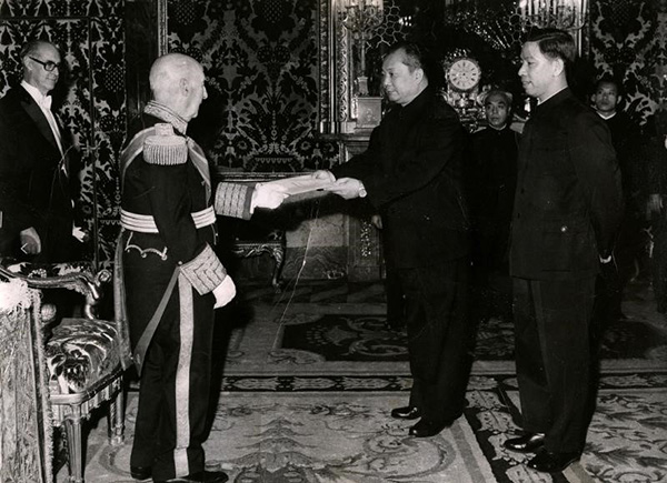 當(dāng)時的西班牙正處在弗朗哥統(tǒng)治時期。當(dāng)共產(chǎn)黨領(lǐng)導(dǎo)的中國外交官來到了西班牙,當(dāng)中國在西方的封鎖圈中與西班牙建交,當(dāng)五星紅旗在馬德里城頭升起的時候,整個西班牙、整個歐洲、整個世界都為之震驚了。