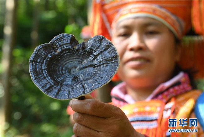 6月3日,在廣西金秀瑤族自治縣長垌鄉(xiāng)長垌村,一名村民展示剛采摘的靈芝。 新華社記者 陸波岸 攝