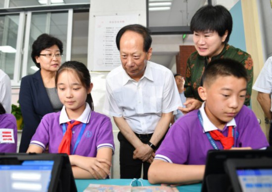6月10日,石泰峰來到銀川市二十一小學(xué)本部,調(diào)研“互聯(lián)網(wǎng)+”創(chuàng)新素養(yǎng)教育開展情況。