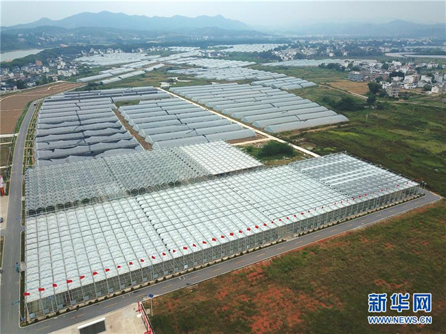 這是江西省于都縣梓山鎮(zhèn)富硒農(nóng)業(yè)產(chǎn)業(yè)園一景(2018年9月28日無(wú)人機(jī)拍攝)。新華社記者 胡晨歡 攝