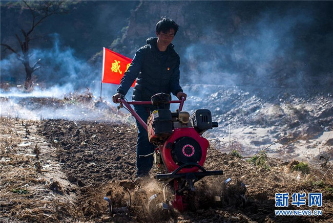 在云南香格里拉市五境鄉(xiāng),格茸幫助生活不便的老人犁地(3月13日攝)。 新華社記者 胡超 攝