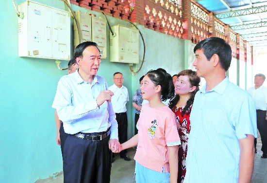 6月18日,新疆維吾爾自治區(qū)黨委書記陳全國到吐魯番市調(diào)研。這是陳全國在吐魯番市高昌區(qū)亞爾鎮(zhèn)英買里村,走訪慰問阿里木·吐爾遜一家,并仔細詢問生產(chǎn)生活、子女就學等情況。崔志堅 攝